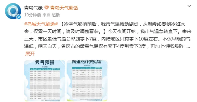今天夜间开始,我市气温急转直下。未来三天,市区最低气温会降到零下7度,内陆地区只有零下10度左右。不仅早晚的气温低,明天白天,各区市的最高气温仅有零下4度到零下2度,再加上4到5级阵风7级的北风吹刮,体感温度更低。周六、周日,我市的云量减少,最高气温虽然有所回升,但也徘徊在冰点上下。
