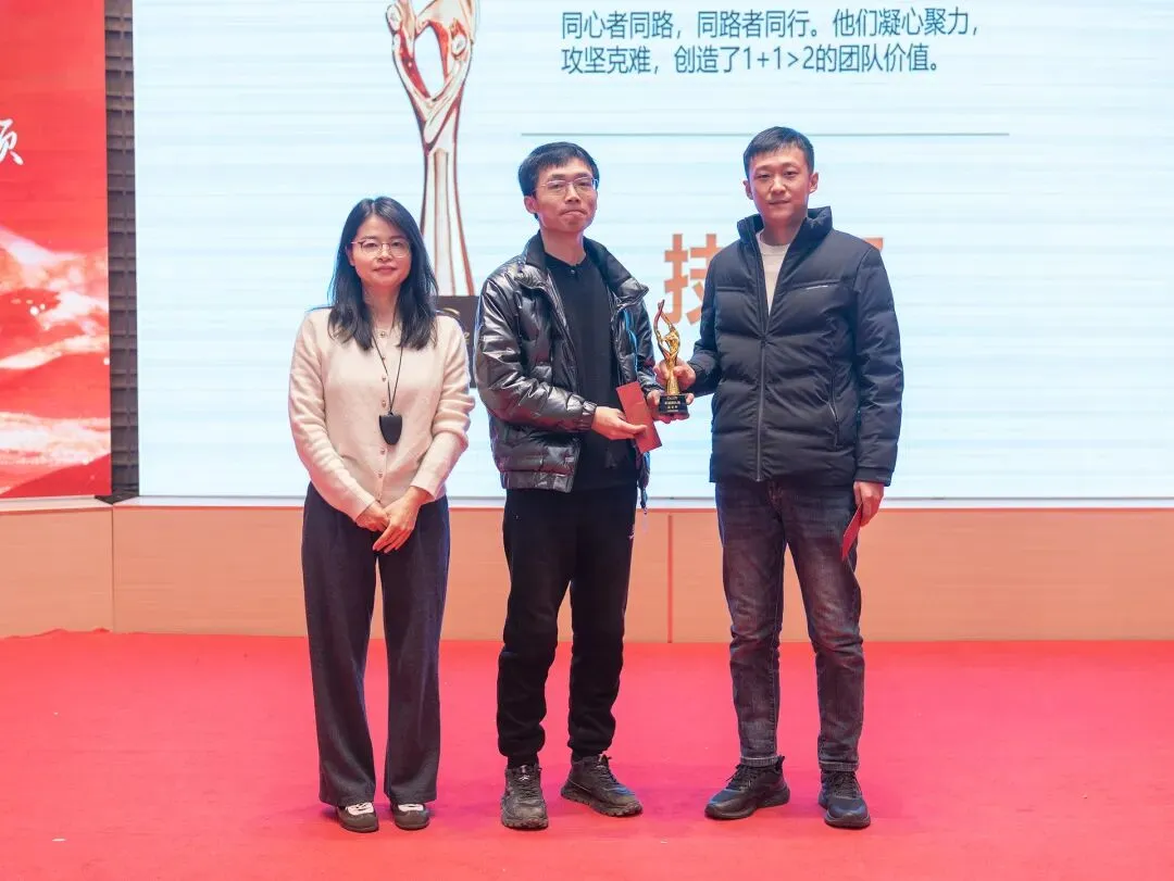 最引人瞩目的杰出贡献奖,颁发给了研发部副部长王钢。该奖为非常设奖项,仅表彰为金木石做出巨大贡献的团队成员。2025 年,王钢带领团队攻克了火试金自动化系统的关键技术难题,为公司向“从中国制造到中国引领”迈进的步伐提供了巨大助力,同时也为金木石走上火试金实验室设备引领者地位的道路迈下了坚实的一步。