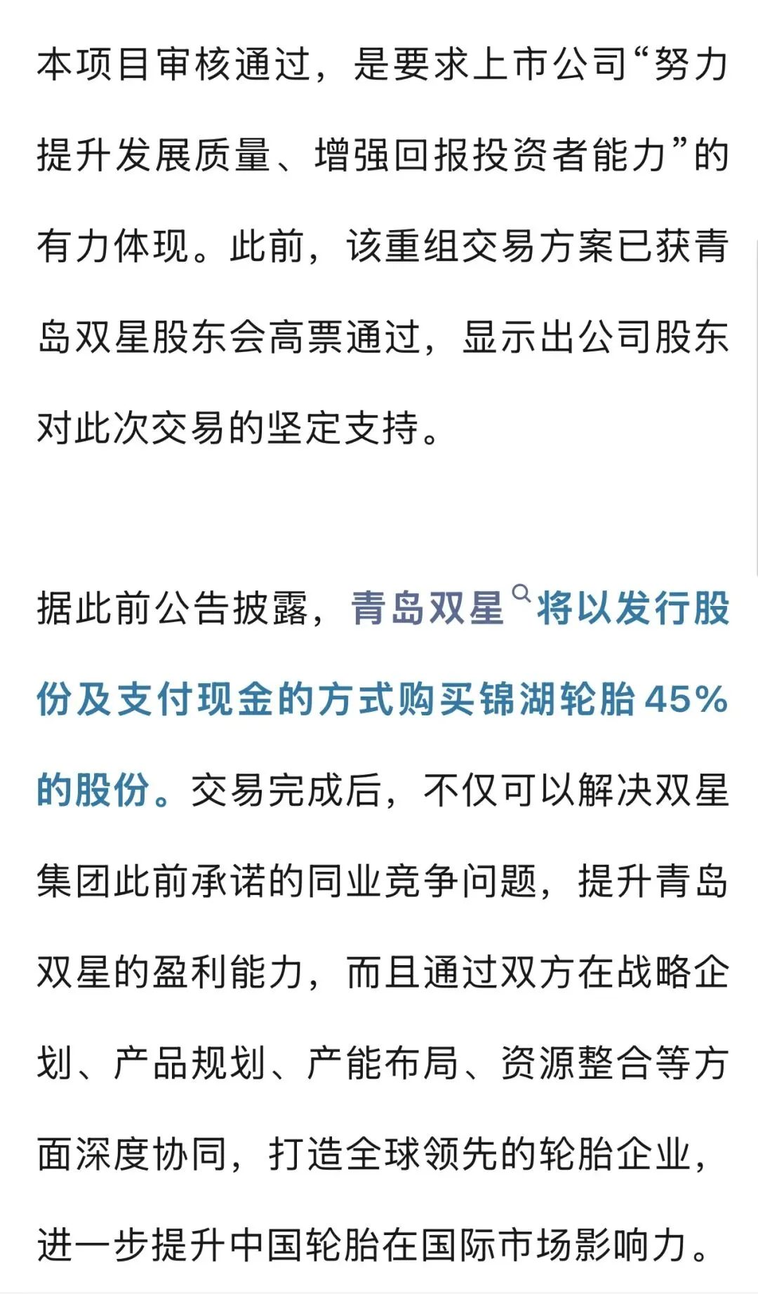 >重磅!青岛双星重组锦湖轮胎项目,传新消息!