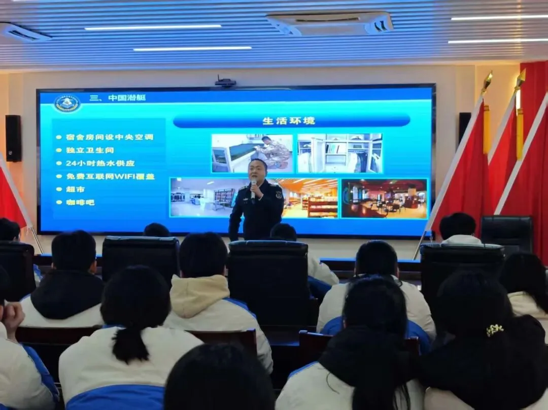 2月5日,青岛海军潜艇学院曾帆、刘俊锋两位教员莅临天长中学,成功举办国防教育专题讲座及招生宣讲活动,为该校师生带来了一场深具意义的国防教育课。