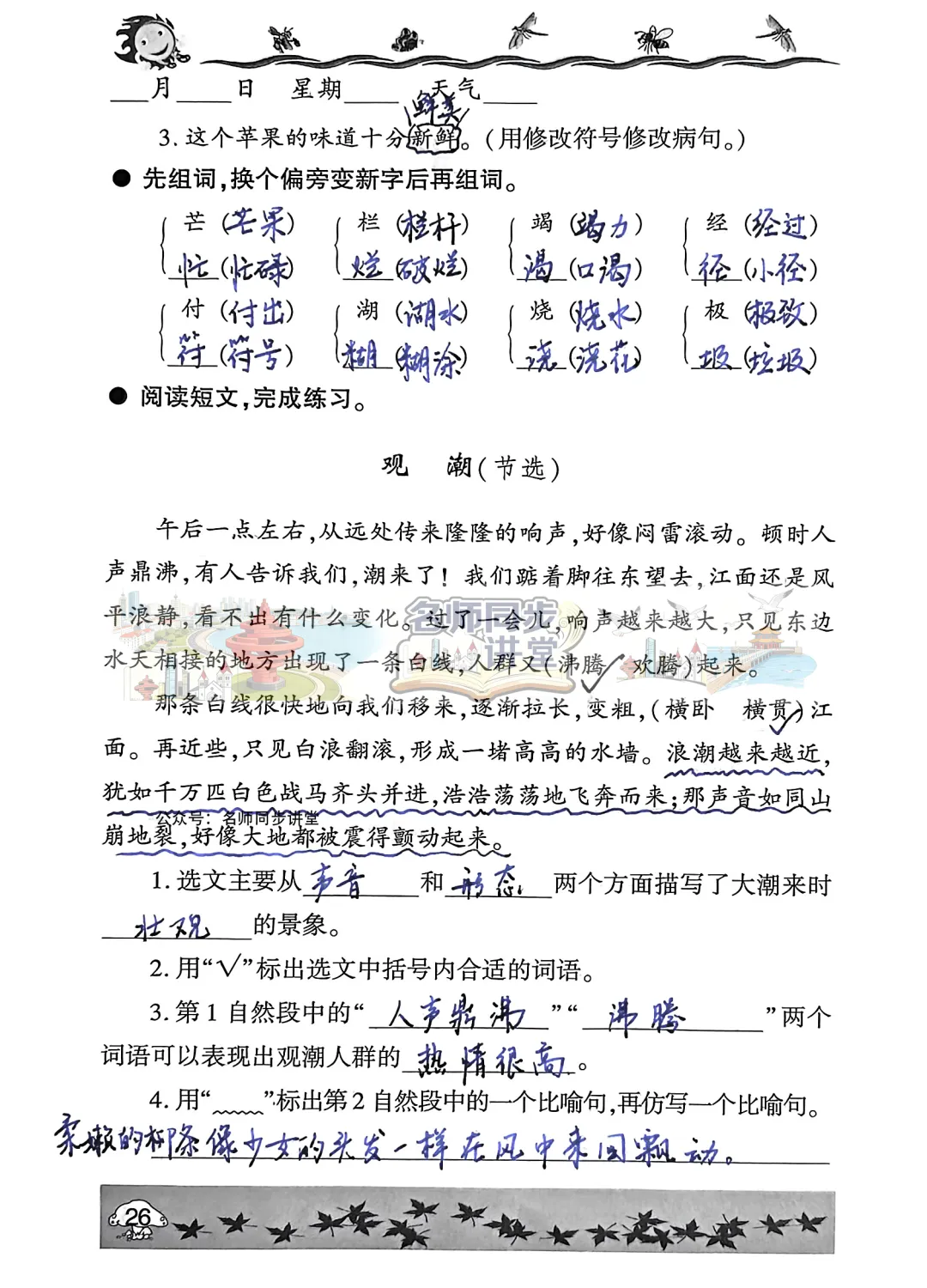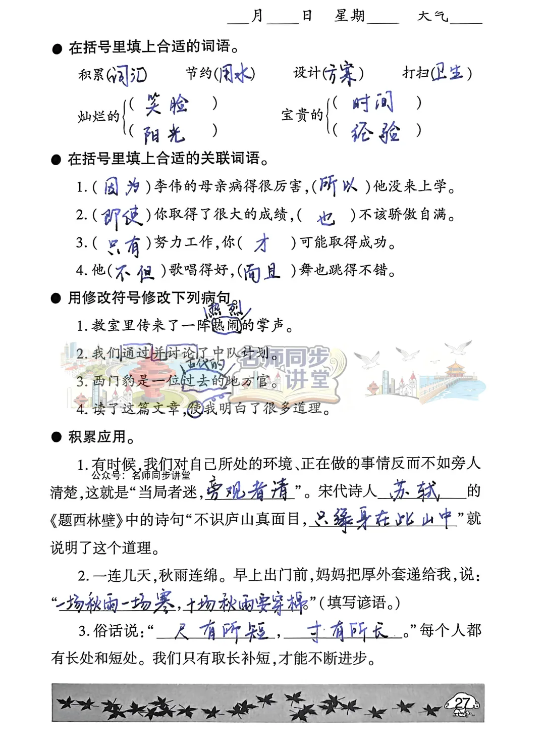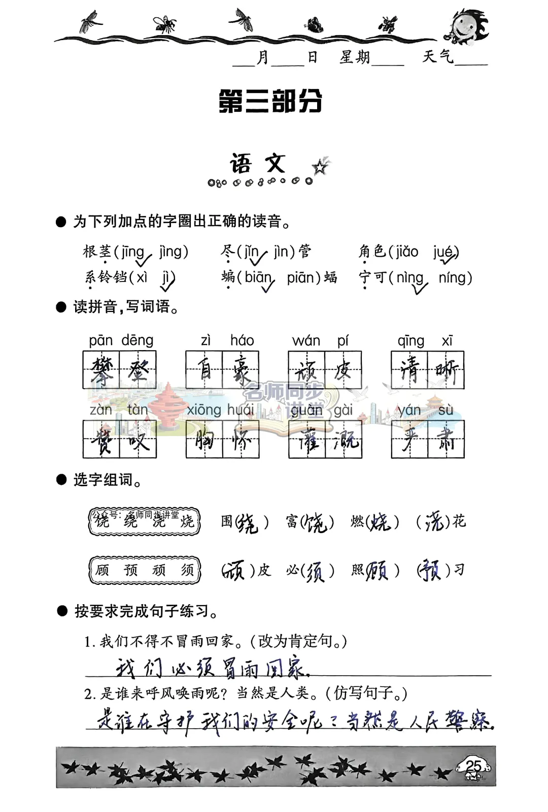 >2026年寒假生活指导答案(六三制青岛出版社)四年级-第三部分-语文