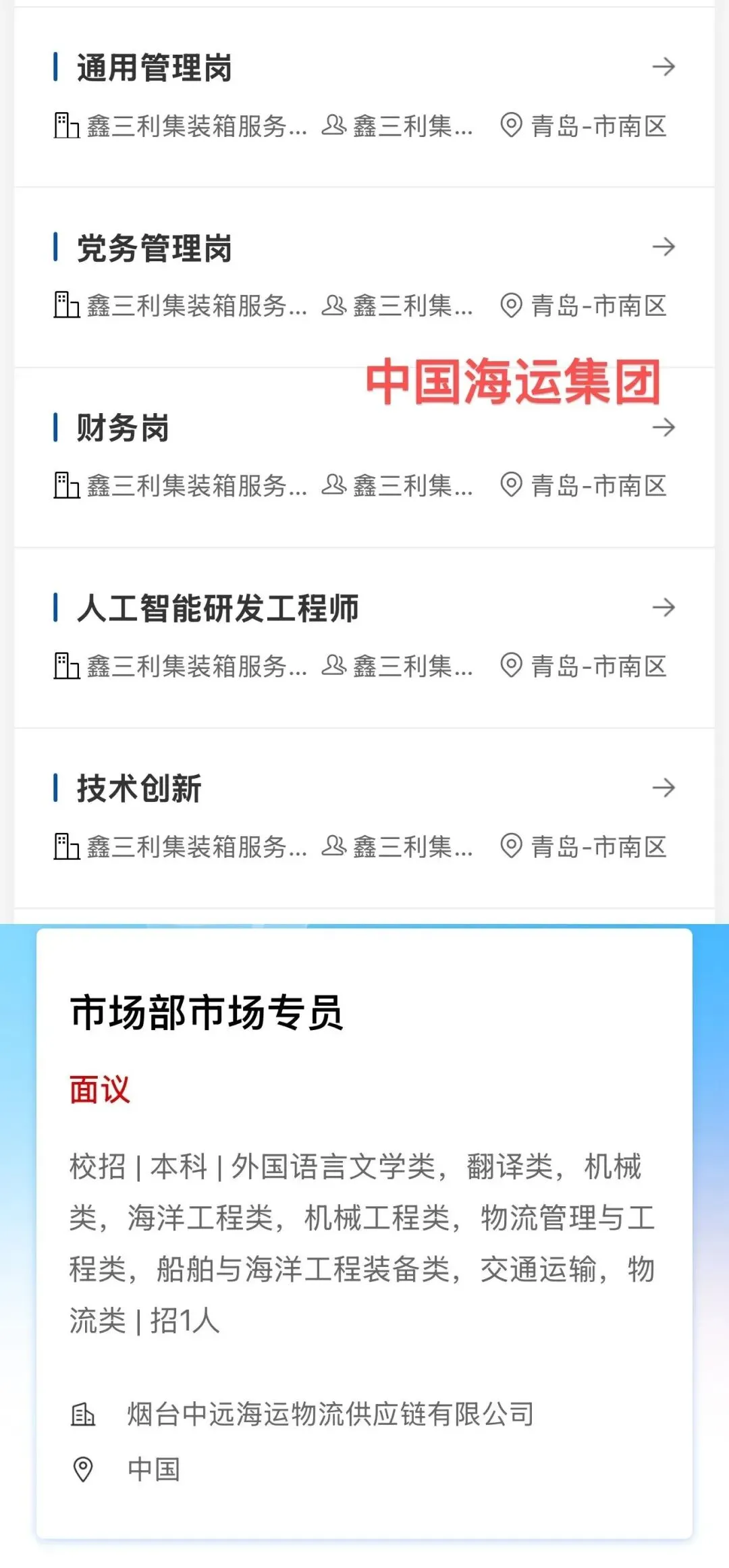 中国远洋海运集团2026校园招聘(青岛/烟台)