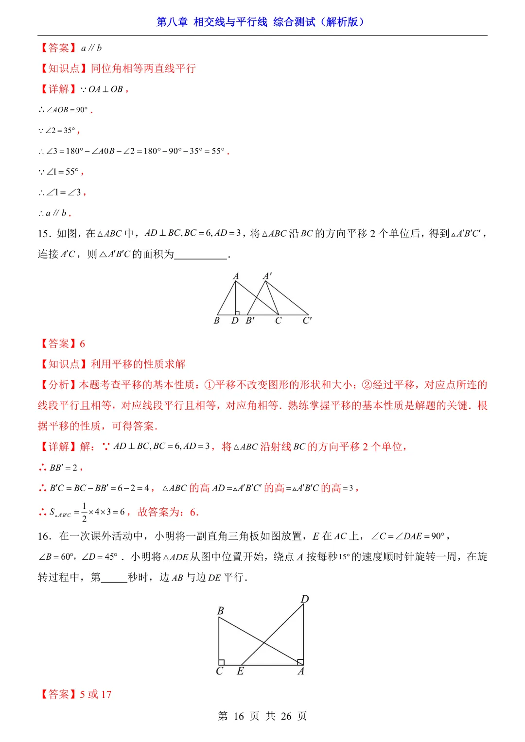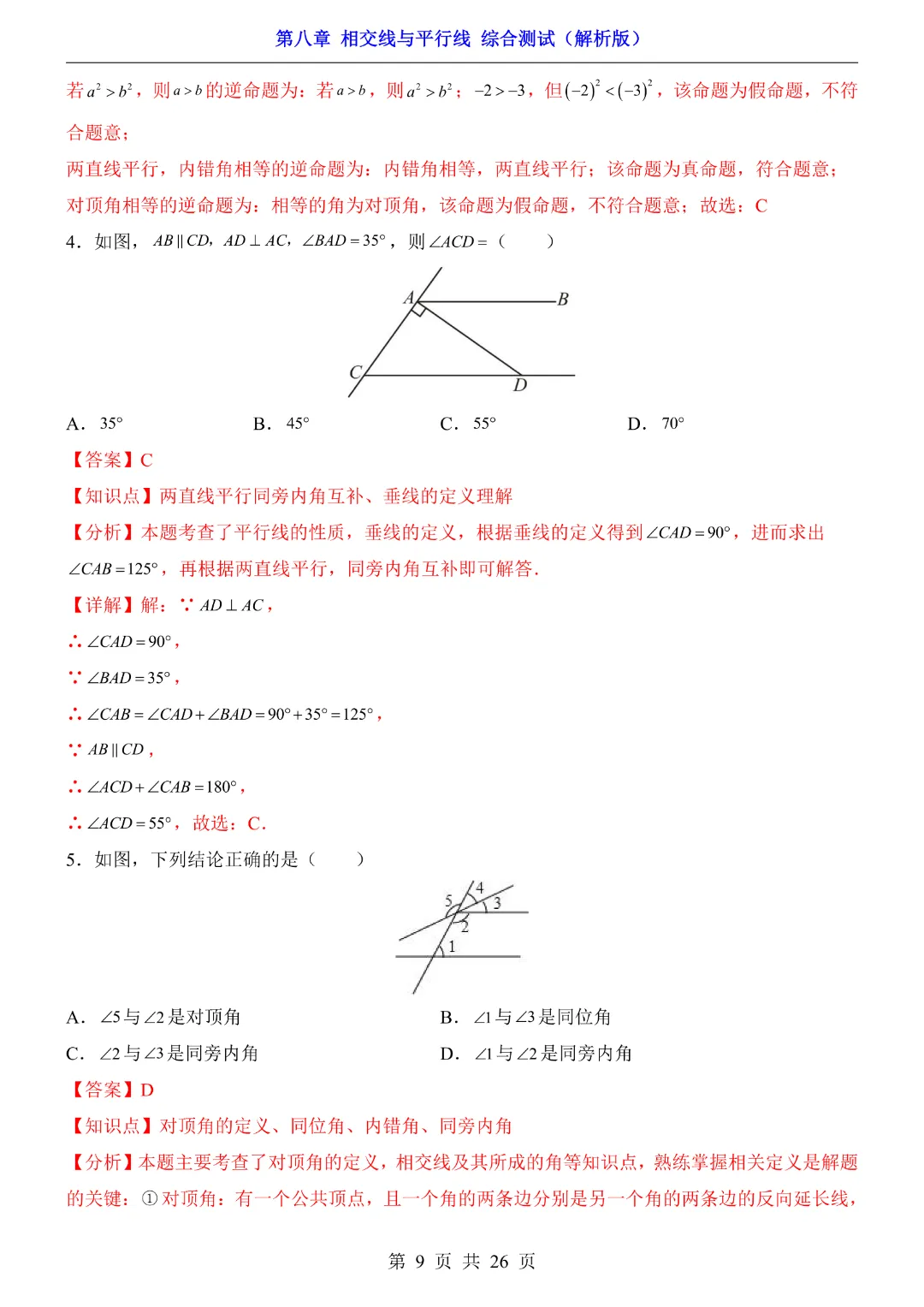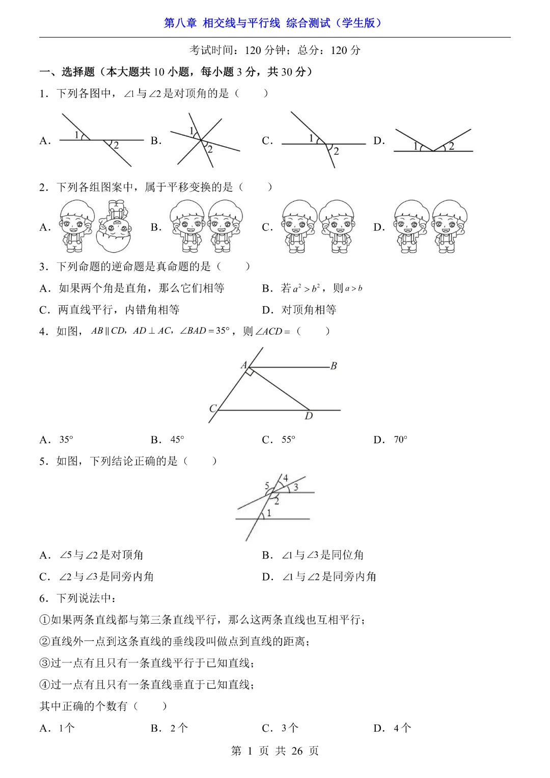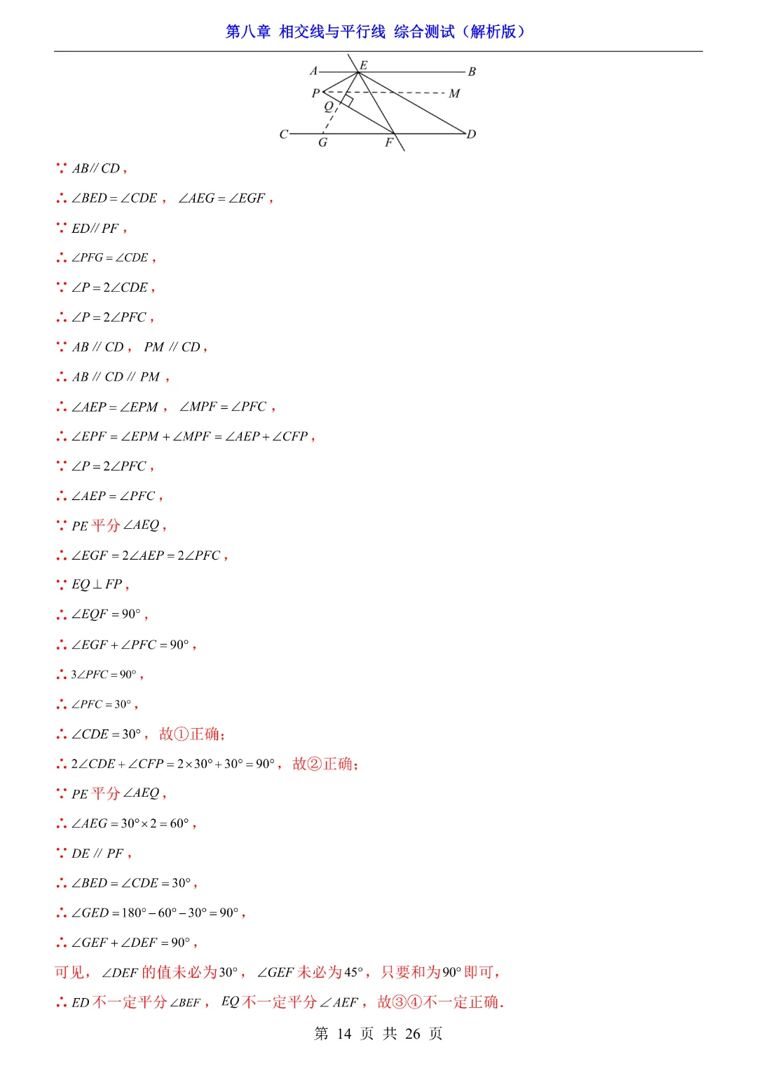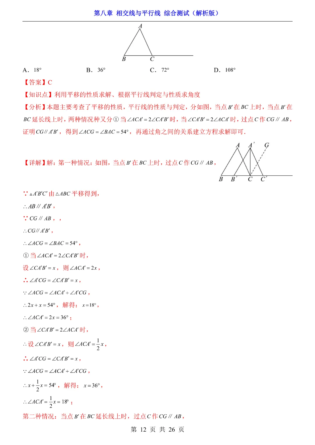 【七年级下册数学】【青岛版】初一下册数学第8章 相交线与平行线综合测试带答案丨完整电子版可打印