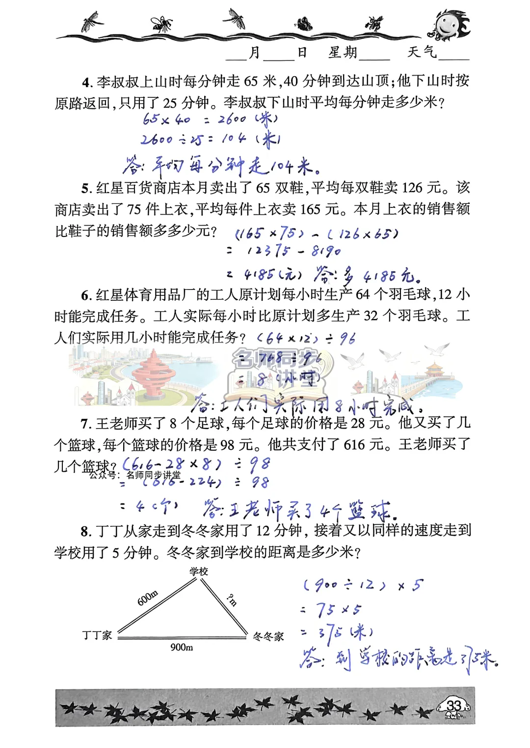 同学们一定要独立完成,千万不要直接抄答案哟