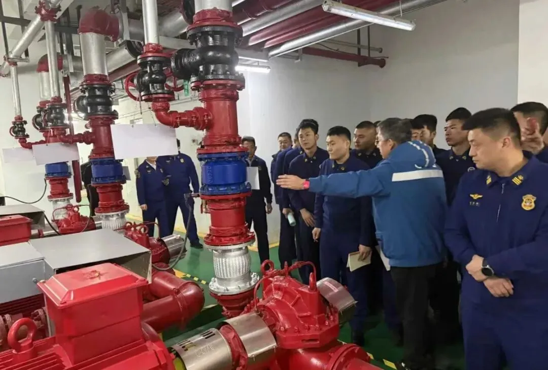 近日,前湾南港服务中心西海岸大厦项目不仅获评“消防现场教学模范试点”,还被青岛经济技术开发区消防救援大队正式选定该项目为“消防固定设施操作授课直播活动”示范场地,面向全区消防救援队伍进行实战化教学直播,快来授课现场看看吧~