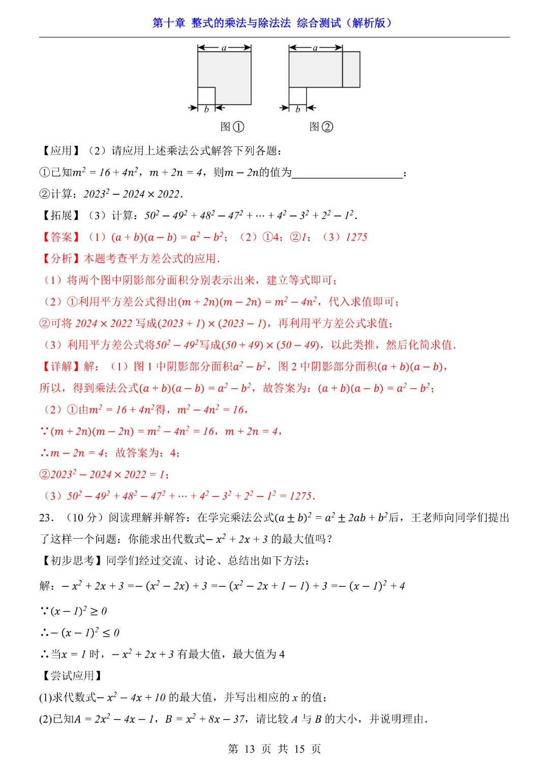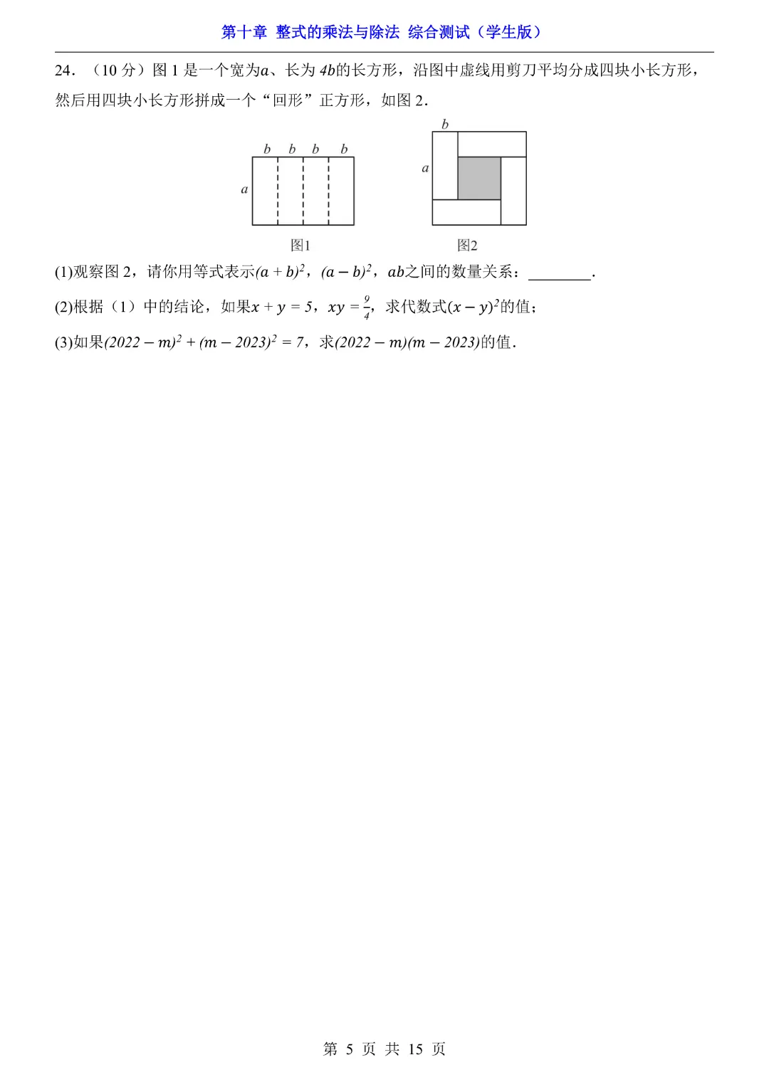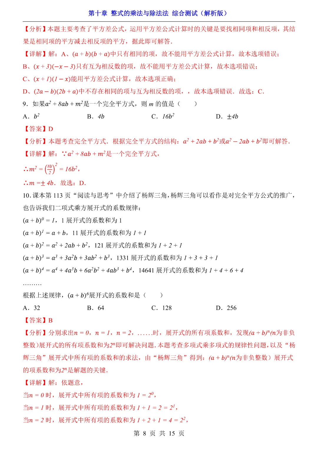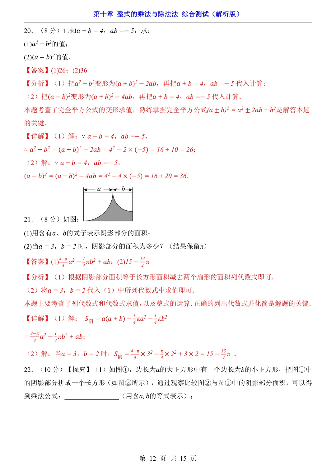 【七年级下册数学】【青岛版】初一下册数学第10章 整式的乘法与除法综合测试带答案丨完整电子版可打印