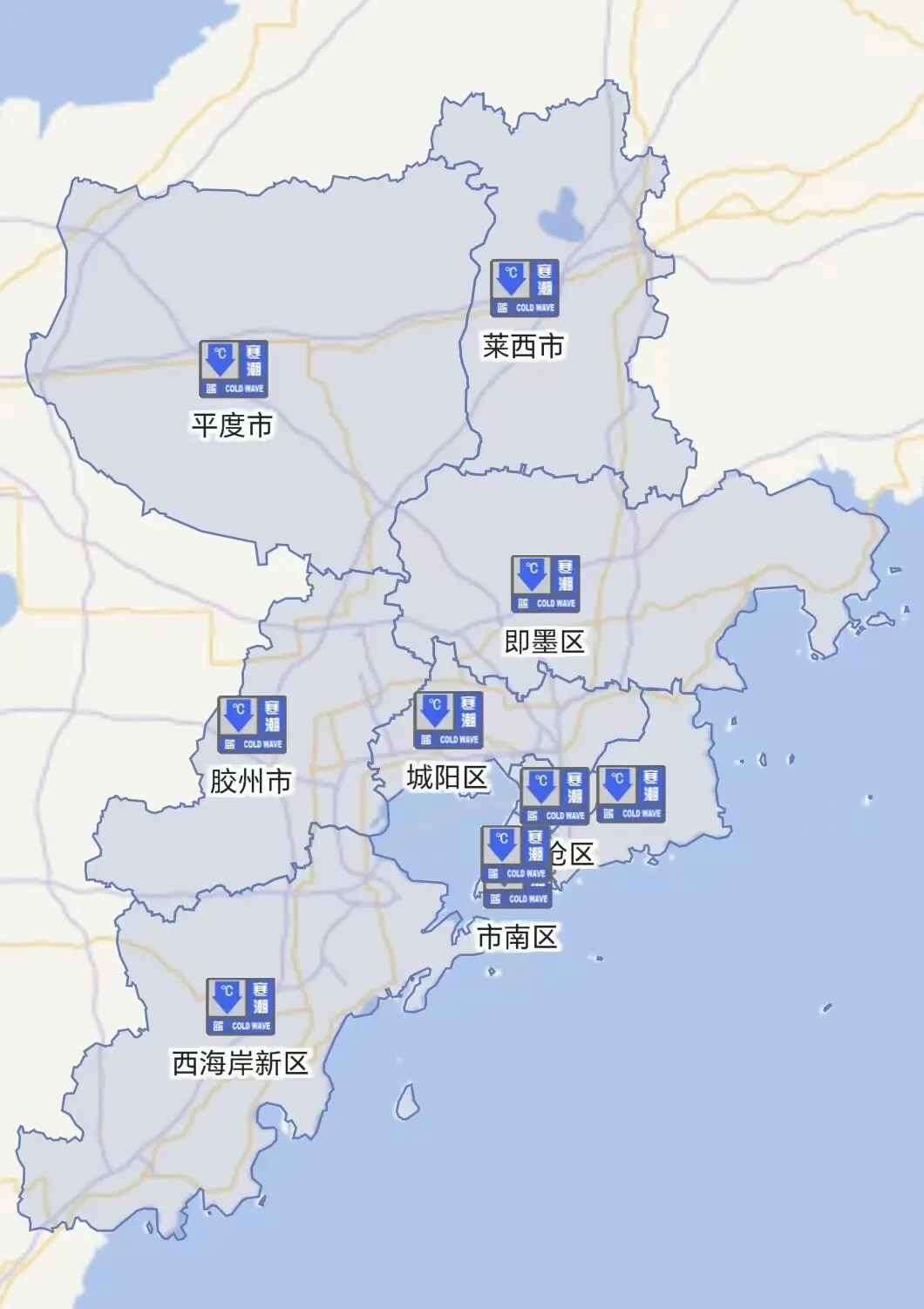 寒潮预警继续!青岛最低-13℃,气温已开始急转直下,周末最高温仅在冰点上下→