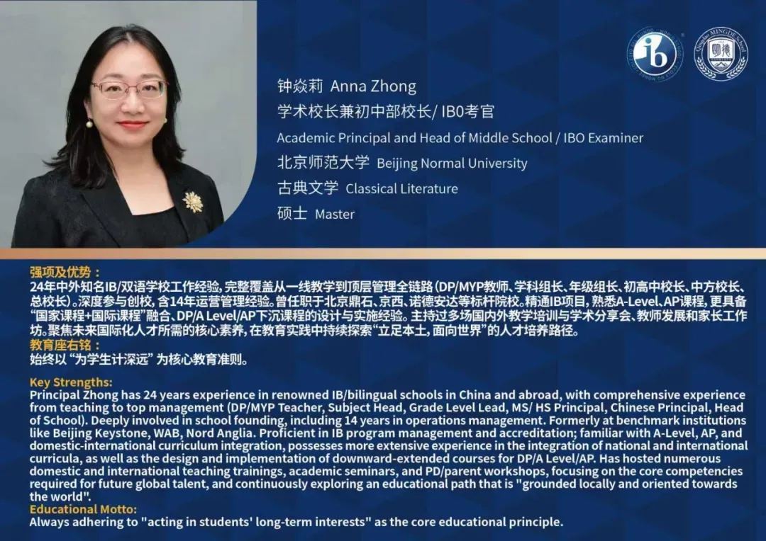 青岛明德双语学校作为山东省唯一一所15年一贯制(3-19岁)IB世界学校,以“读中国,阅世界”为核心理念,深度融合中国传统文化与全球领先的IB教育理念,致力于培养兼具中华灵魂、国际视野与全球竞争力的未来英才。