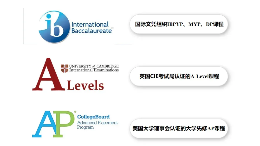高中部构建融合IB DP、A-Level 以及AP三大主流国际课程体系,既延续IB MYP教育的全球视野基因,又通过多赛道布局适配学生特质,实现“中华灵魂”与“全球竞争力”的双向赋能,课程框架优势集中体现在个性化适配、升学赋能与素养深耕三大维度。