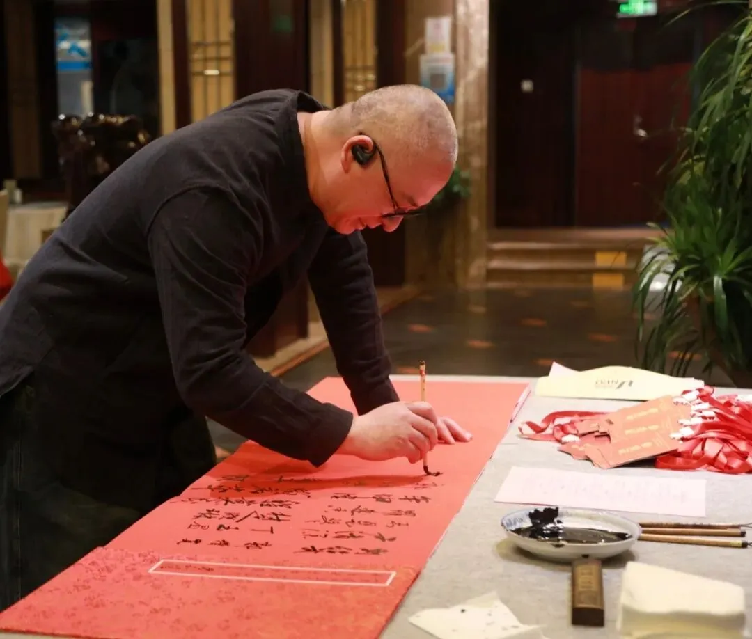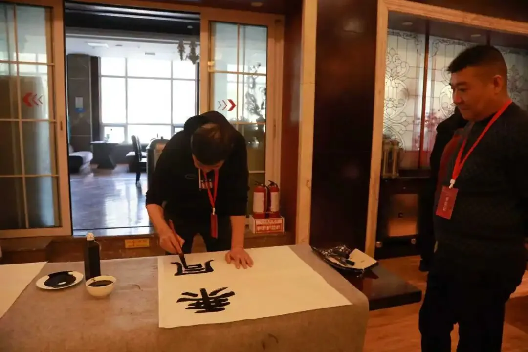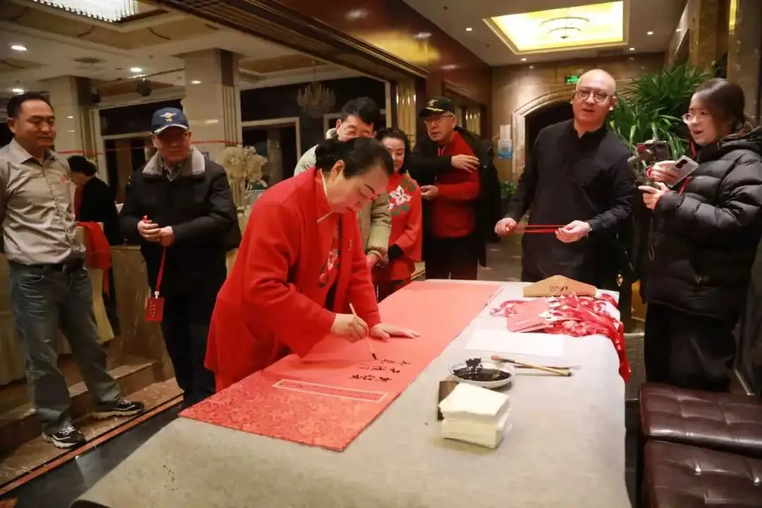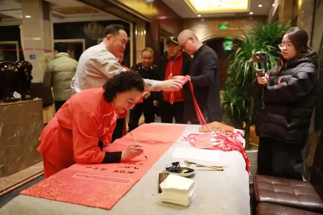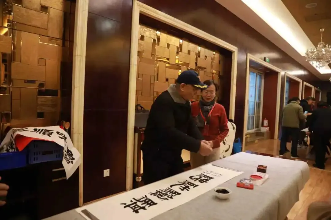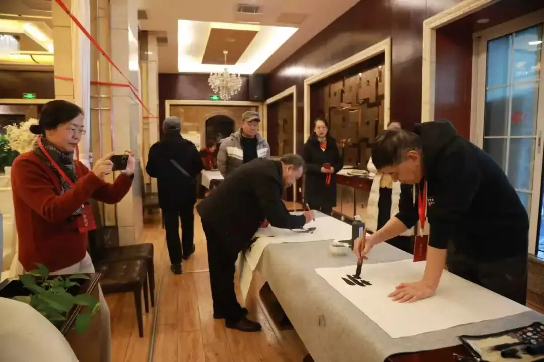 年会现场暖意融融,老师们共同回望2025年的耕耘与收获,细数过去一年在书画创作、交流展陈、文化惠民等方面取得的各项成就,一张张佳作、一次次的活动,凝聚着全体成员的心血与热爱。签到后大家来到会议现场尹情深老师、于敦水老师、卢爱斌老师、邓所义等很多老师挥毫泼墨,在宣纸上行云流水写下一幅幅饱含新春祝福的书画作品,墨香氤氲间尽显传统艺术魅力,引得现场所有老师阵阵赞叹争相收藏。