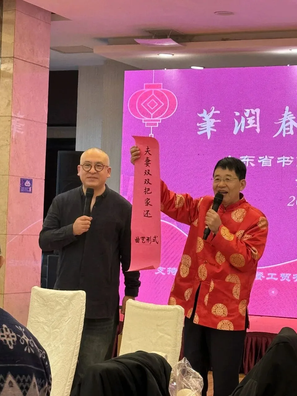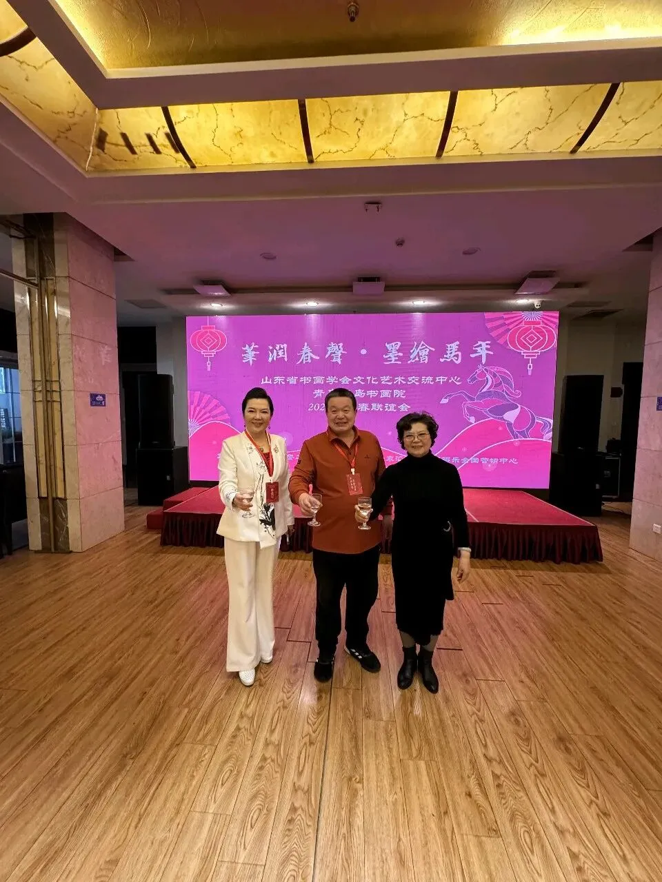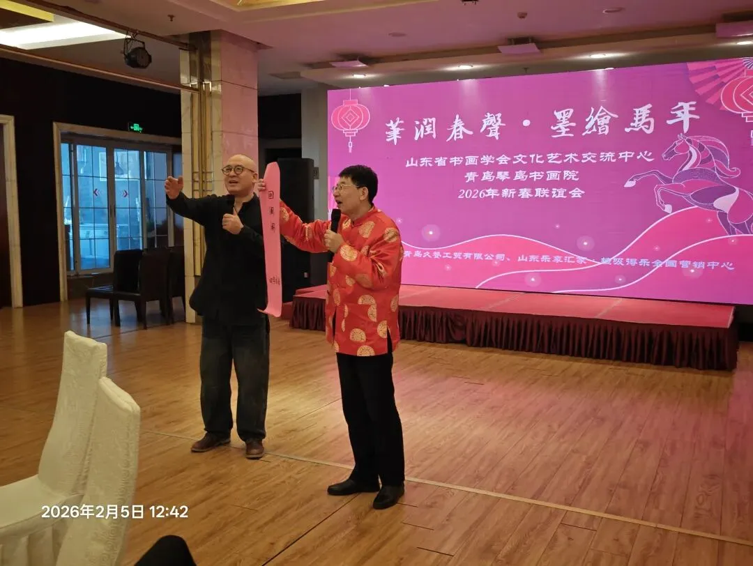 青岛琴岛书画院、山东省书画学会文化艺术交流中心理事长刘绍武、院长刘泉涛等领导做了重要讲话,岁末回眸硕果累累,一路芳华一路墨香,刘院长对2025年的工作进行全面回顾,同时并展望新一年的工作,坚守文化传承初心,例行交流研讨为重点继续举办书画展览等核心活动,有序为广大会员和书画爱好者搭建平台。