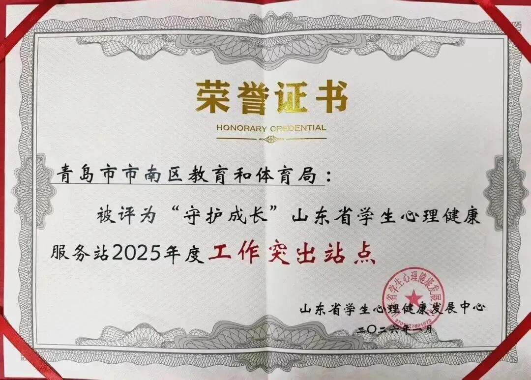 【转发】青岛市唯一!市南区获评“守护成长”山东省学生心理健康服务站2025年度工作突出站点并作经验交流