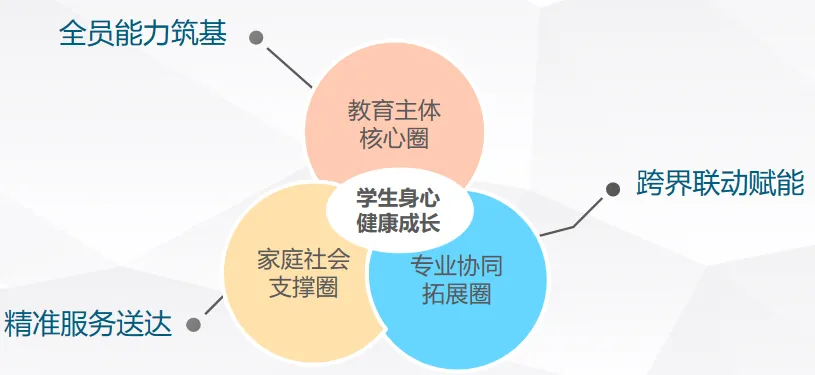 充分发挥青岛市“校家社协同育人品牌区”优势,构筑以学生身心健康成长为中心的“教联体”“三圈协同”生态圈。教育主体核心圈,全员心育筑基,配齐建强各类心理工作与服务队伍,培训研讨全覆盖。家庭社会支撑圈,精准服务送达,创新服务载体,持续开展教育名家市南行“大家讲堂”、“相伴最优成长”校园开放季、“共享美好生活”行动、周末“益”起来系列公益课程等品牌活动。专业协同拓展圈,携手青岛大学、青岛市精神卫生中心、区文明办、区妇联等“教联体”资源单位开展跨界活动近600次,构建强有力支持系统。