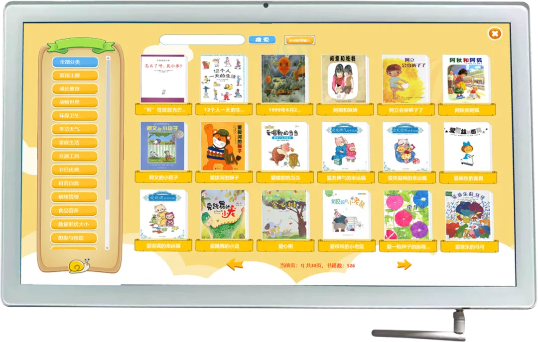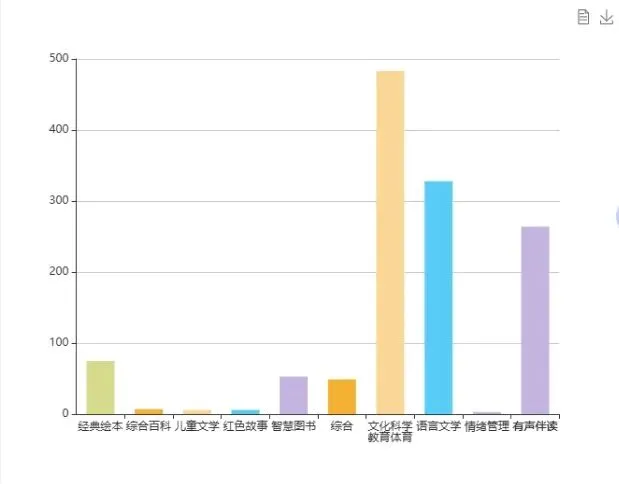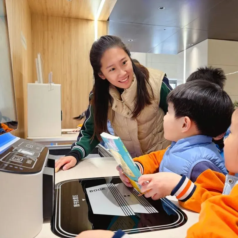 园内智慧图书室面积约200㎡,藏书上万余本。引入全套图书智能管理系统,实现幼儿阅读信息数字化分析,实现“图书录入➡扫码借书➡扫码归还➡借阅记录➡统计分析”的智慧管理流程,并能够实时采集、分析每位幼儿的阅读偏好与频次数据,为教师、家长提供精准的阅读兴趣图谱与个性化指导依据,对幼儿进行“全面+个性”的引导教育。
