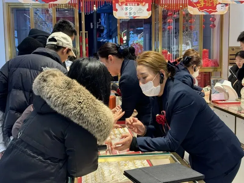 今年市场景象与高位金价紧密绑定:国际金价刚经历一轮“过山车”,从1月底每盎司5518美元高位回落后再度攀升,国内品牌金饰价格也随之在高位波动。