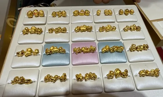 现场一名销售人员表示,尽管单价高,但设计精巧、克重较小的生肖马挂坠和编织金珠手链等产品特别畅销,“很多人买来当作新年礼物或本命年礼物,花上一两千元,既能拿得出手,又是份实在资产。”销售人员说。