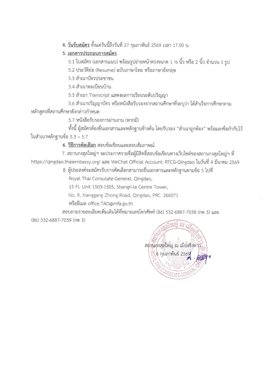 泰王国驻青岛总领事馆公告第3/2569号关于招聘本地雇员(文员)一名