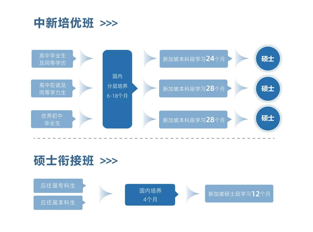 青岛大学教育集团依托优质教育资源,面向广大学生开设中新培优班、硕士衔接班国内课程培训及国际交流,旨在帮助学生夯实学科基础、提升语言能力。课程学习结束后,可到新加坡继续攻读本科、硕士。通过系统化培养,助力学生高效过渡至海外高等教育阶段,拓宽职业发展路径。