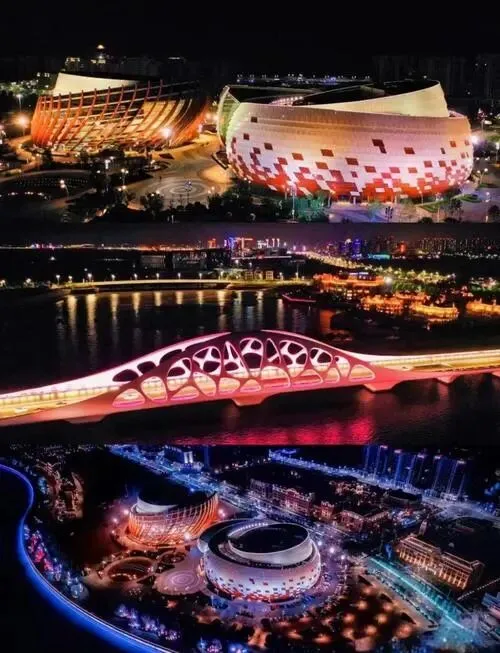 第一天落地,进西海岸,上午金沙滩,下午东方影都,傍晚城市阳台看海面发光,夜宵来一锅海鲜大咖。