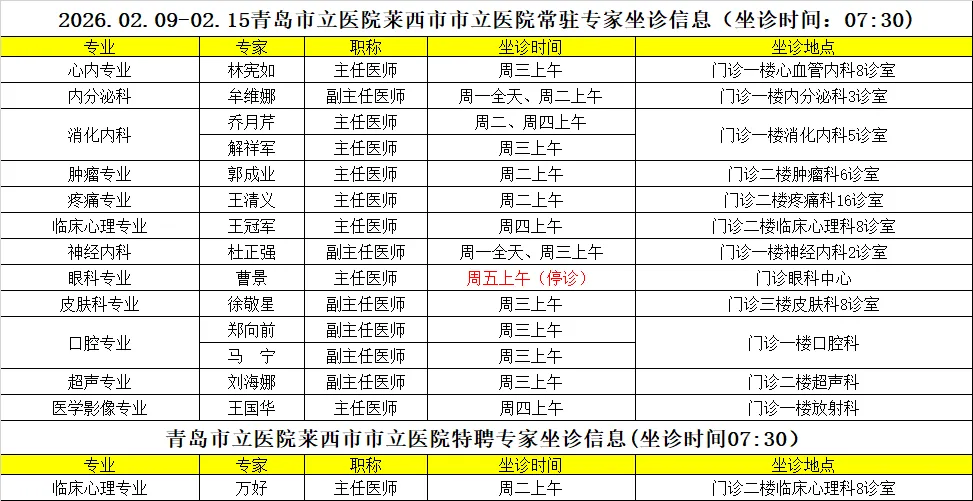 【专家坐诊】青岛市市立医院专家坐诊信息(2月9日-2月15日)
