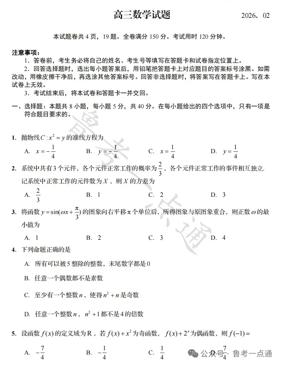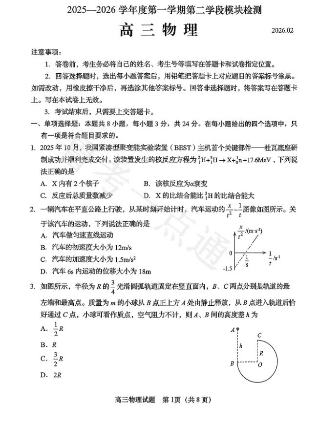 2026年2月青岛高三期末考试已结束!老师将及时整理青岛期末语文、数学、英语、物理、化学、历史、政治、地理、生物各科试题及答案!供大家下载练习。