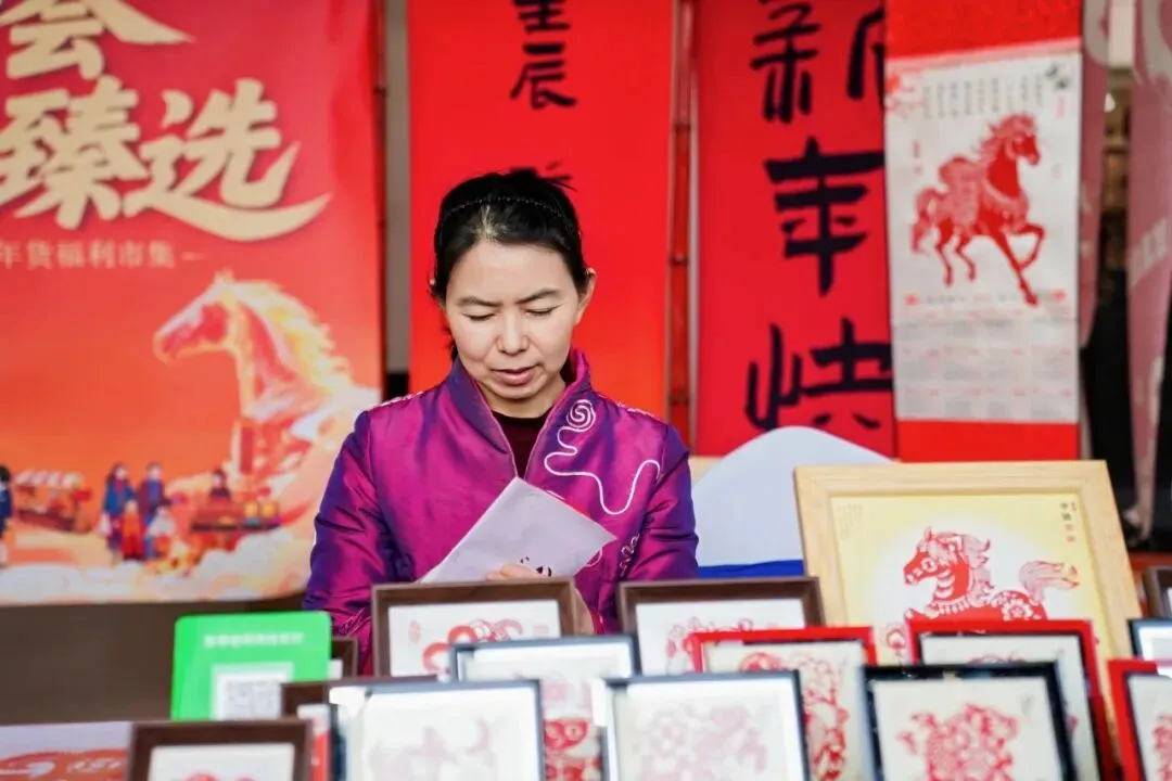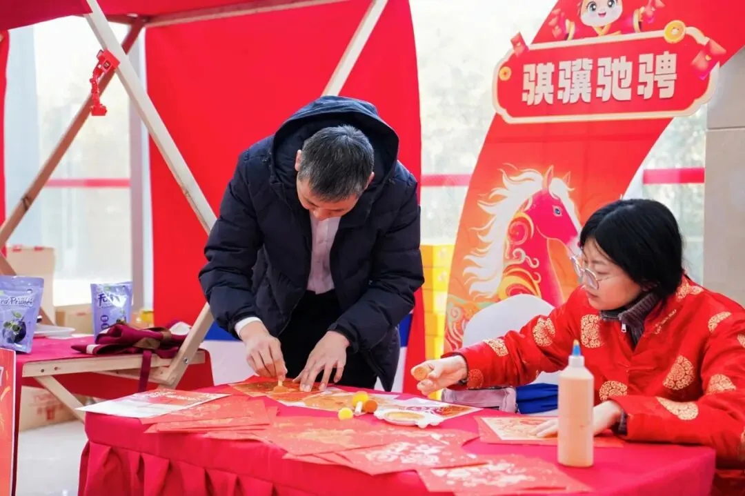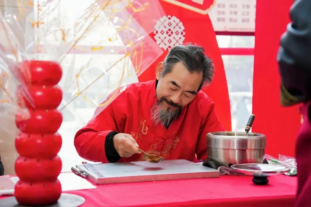 为让市集更具新春氛围、更有文化底蕴,活动现场精心打造多种特色新春主题活动,让市民在置办年货的同时,沉浸式感受传统文化魅力与新春喜庆气息。其中,书法家亲临现场挥毫泼墨,书写新春福字、吉祥方斗,将满满的新春祝福融入笔墨之间;趣味盲盒抽奖环节惊喜不断,各类新春限定礼品轮番送出,吸引市民踊跃参与、欢声笑语不断;更有非遗传承人现场亮绝活,展示剪纸、糖画、拓印等传统非遗技艺,同时设置互动体验环节,亲身感受非遗文化的独特魅力。