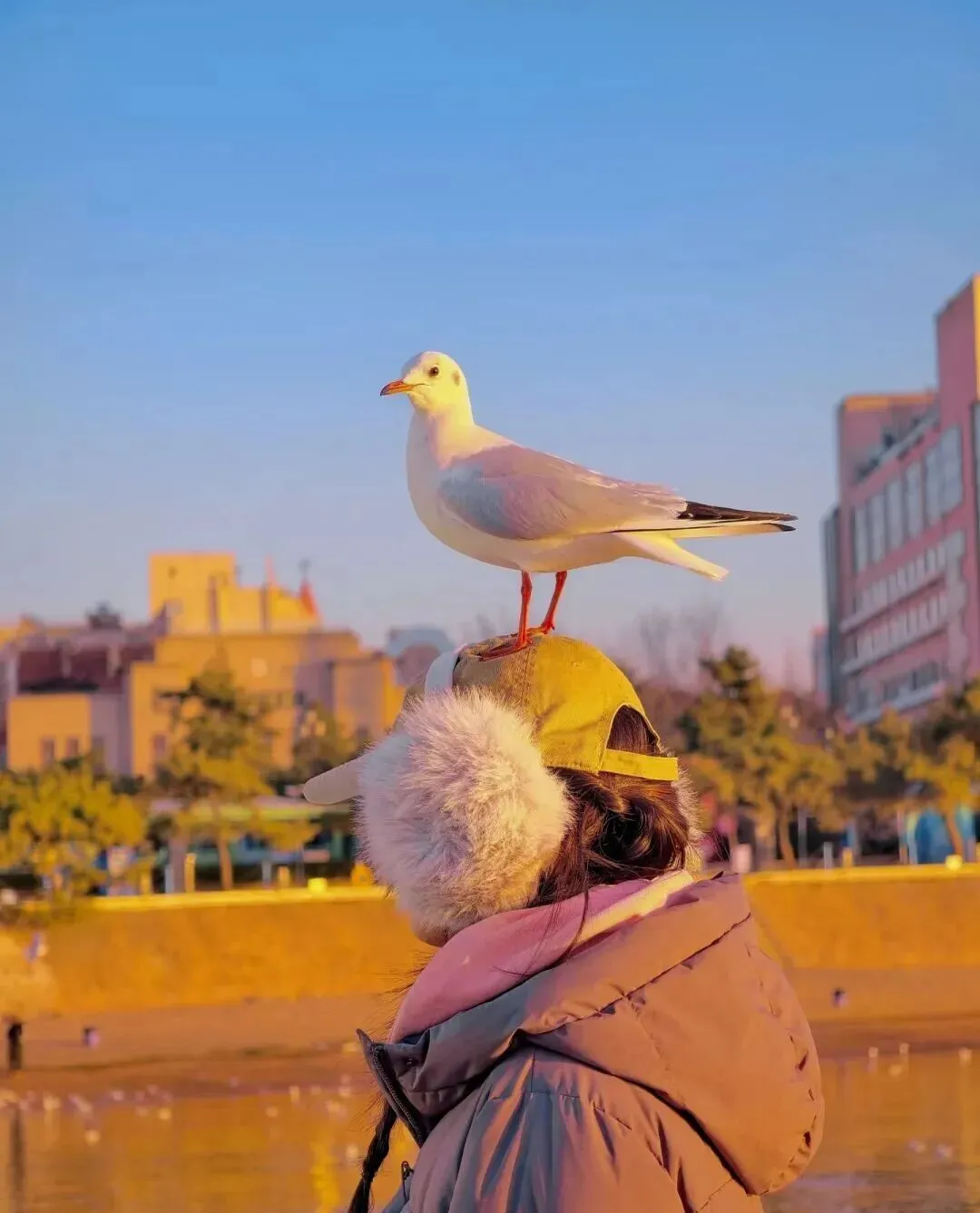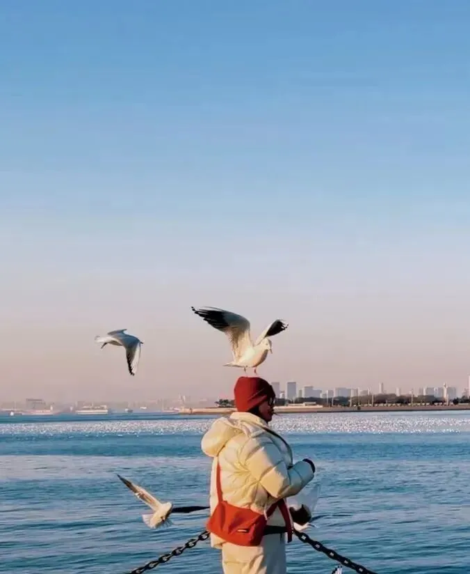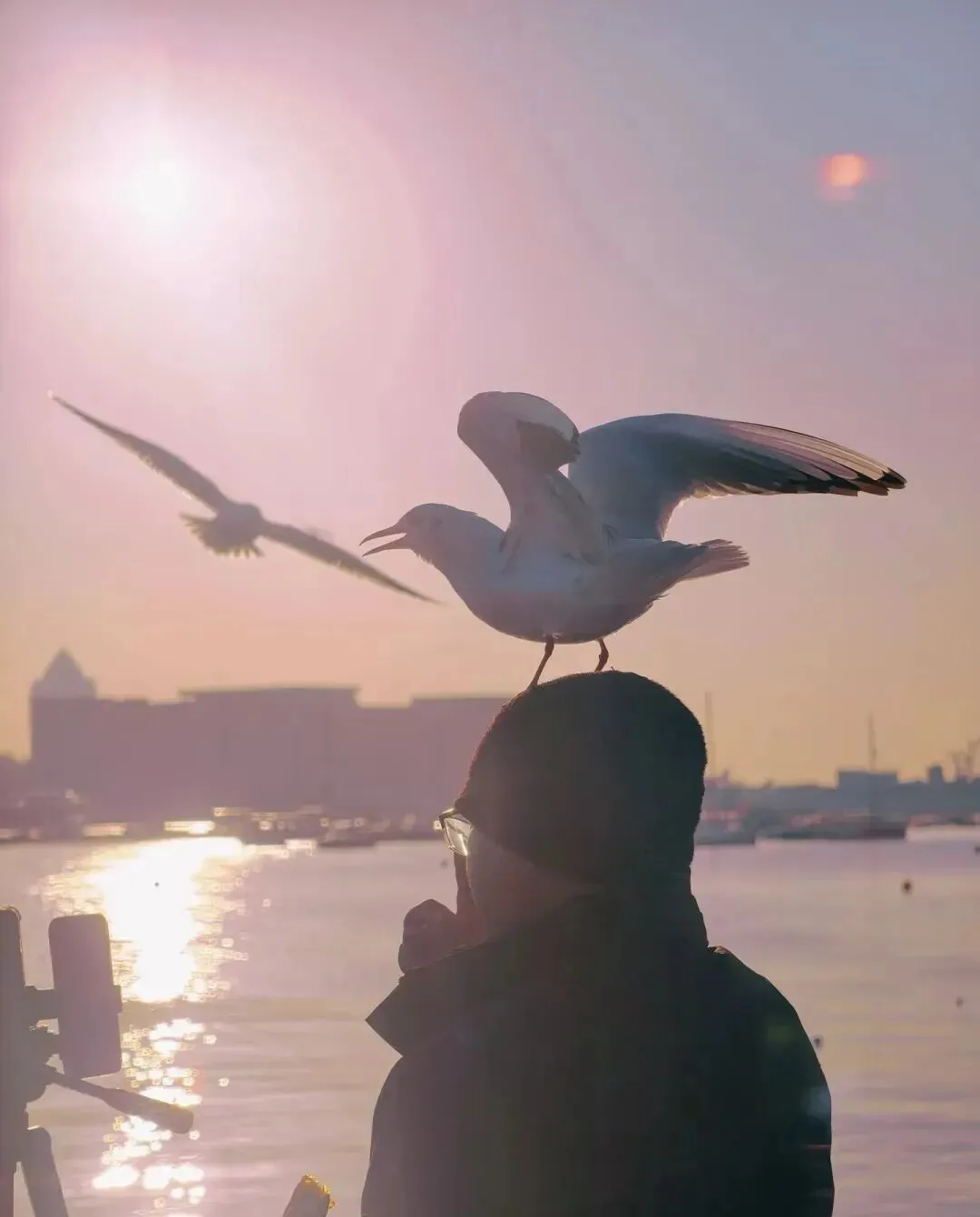 这是青岛冬日最硬的一首诗,它甚至不需要文字,它只需要一个不怕脏的肩膀,和一个愿意被小家伙占领的脑袋。在那一刻,你终于明白,所谓的万物灵长,在海鸥眼里,不过是一个恒温的、好用的、偶尔还会掉馒头屑的底座罢了。