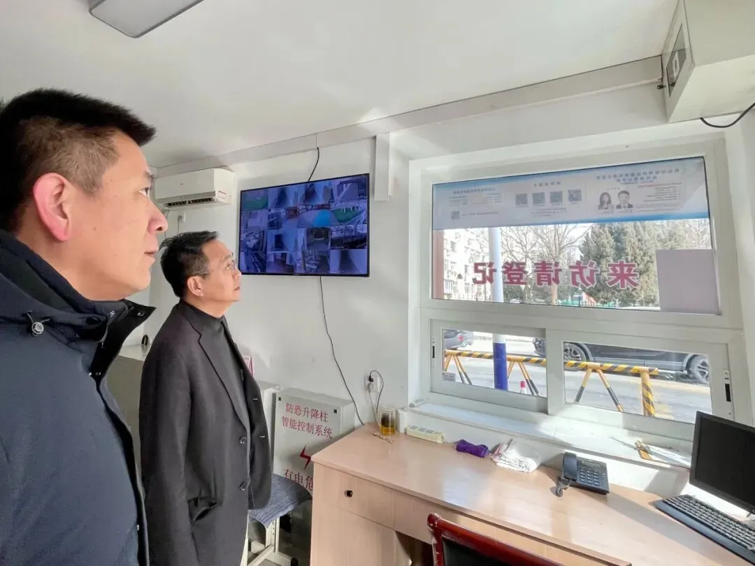 检查小组深入校园各个重点区域,进行了细致、全方位的排查。一行人首先查看了校门传达室,检查了人员出入登记、安保器械配备及值班制度落实情况,强调要严守校园“第一道关口”。