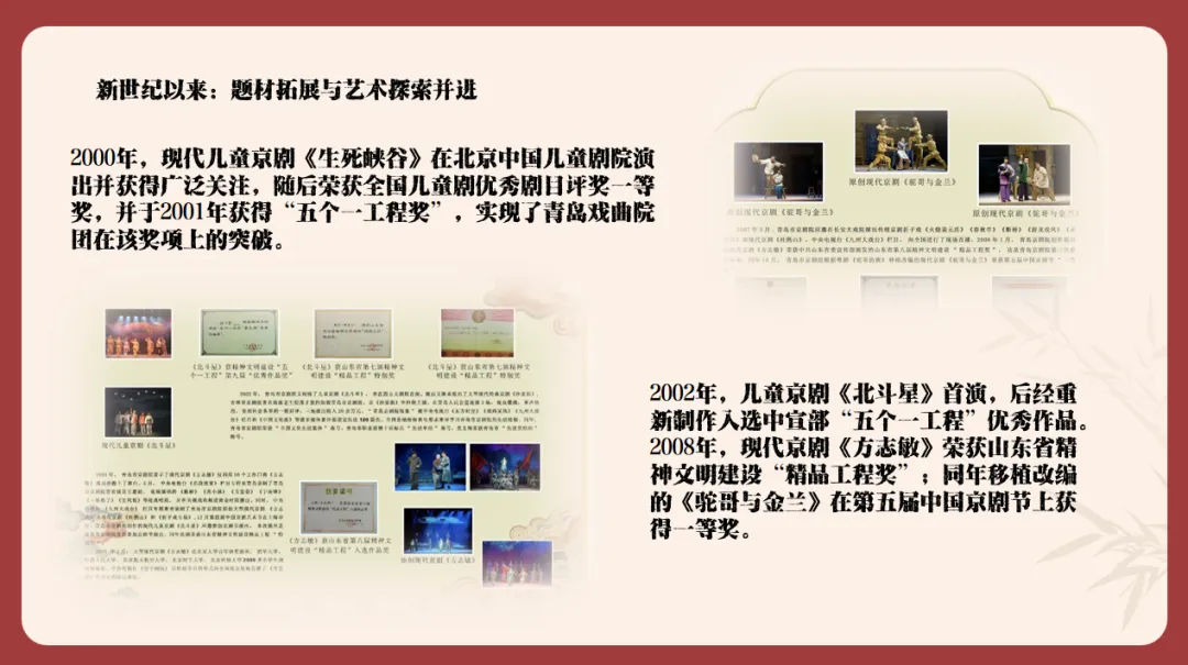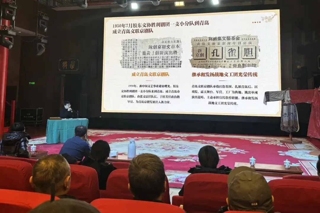 剧目创作板块主讲人盛波梳理了青岛市京剧院从上世纪五六十年代至今的剧目创作历程,从传统戏到新编历史剧再到现代戏,剧院不断与时俱进,守正创新,展现了在剧目创作、改编上的卓越实力。