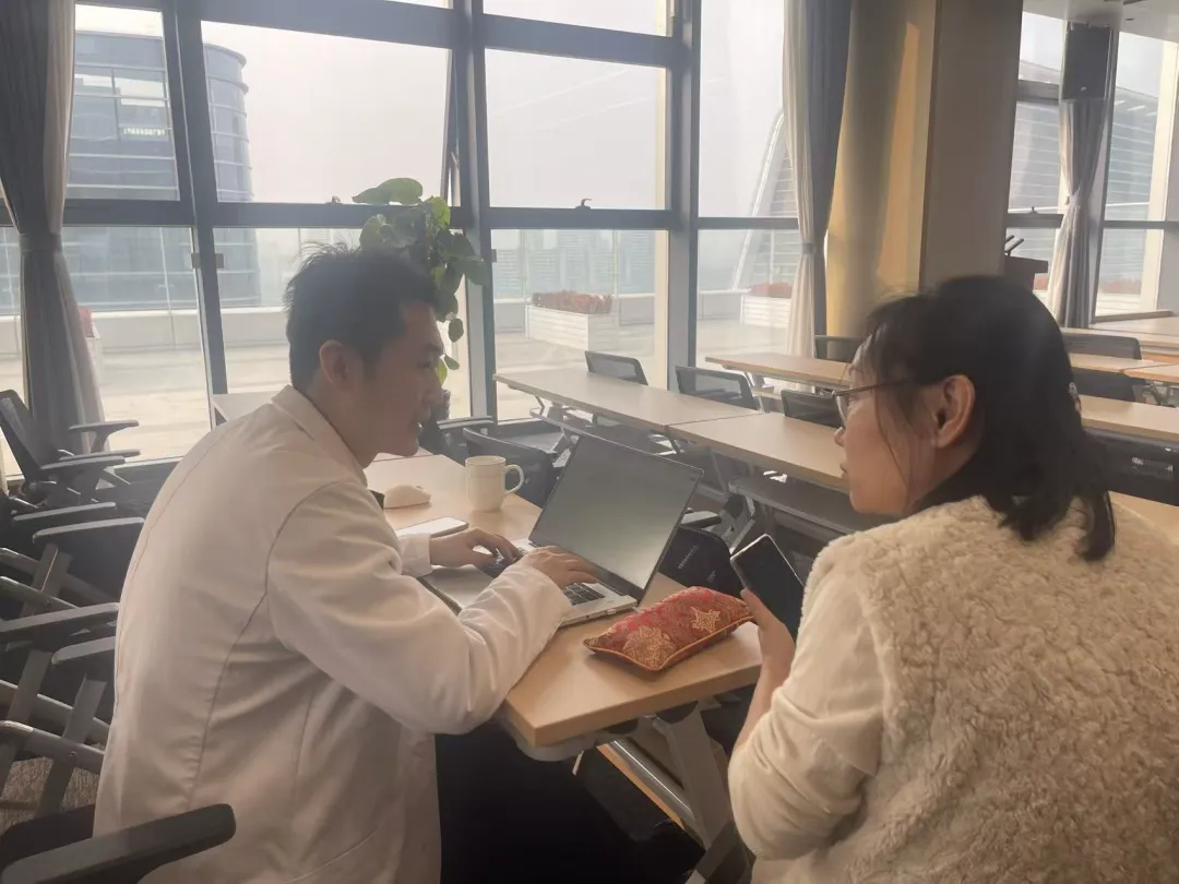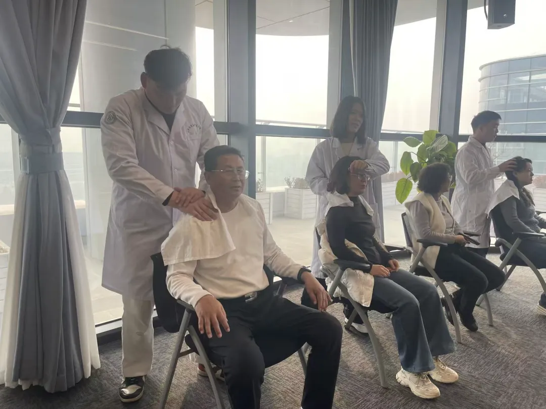活动现场,山东中医药大学郭炜教授带领岐黄驿站博硕实践团成员为职工们提供专业、细致的中医药健康服务,通过中医特色诊疗,精准评估职工身体状况及潜在健康隐患,针对职场人久坐引发的肩颈腰背不适等高发问题,重点开展推拿、耳穴压豆等非药物治疗,同步普及中医养生常识、日常调理技巧,一对一指导职工科学养护身体,助力大家提升自我保健能力。