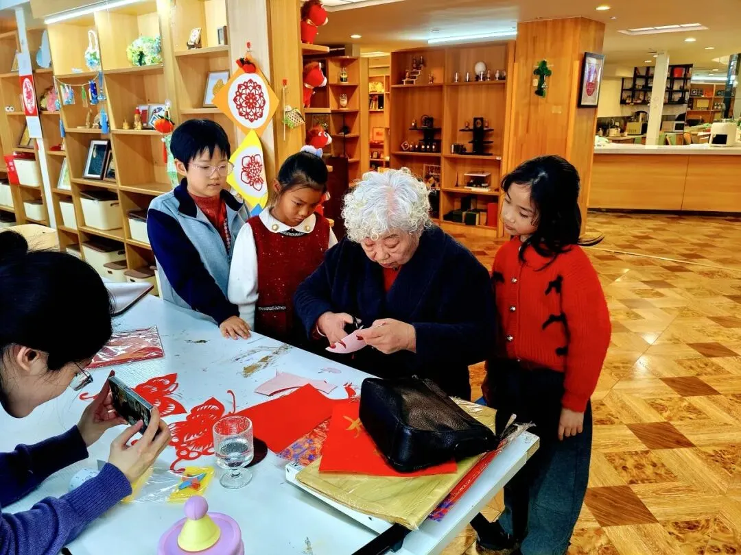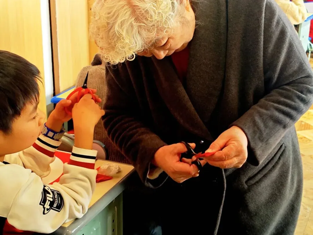 剪纸:非遗传承人李文玲,教孩子用剪刀和红纸剪出创意窗花,装点新年。