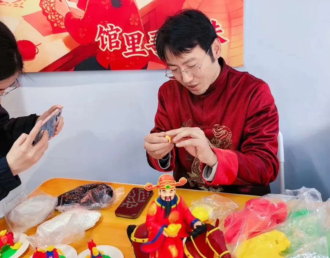 面塑:国家级非遗 “面人汤”第三代传人张世建,带孩子用彩泥捏出灵动小马等玩偶,感受老手艺年味。