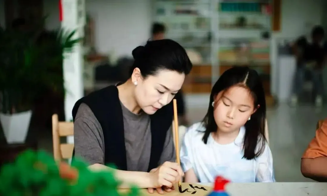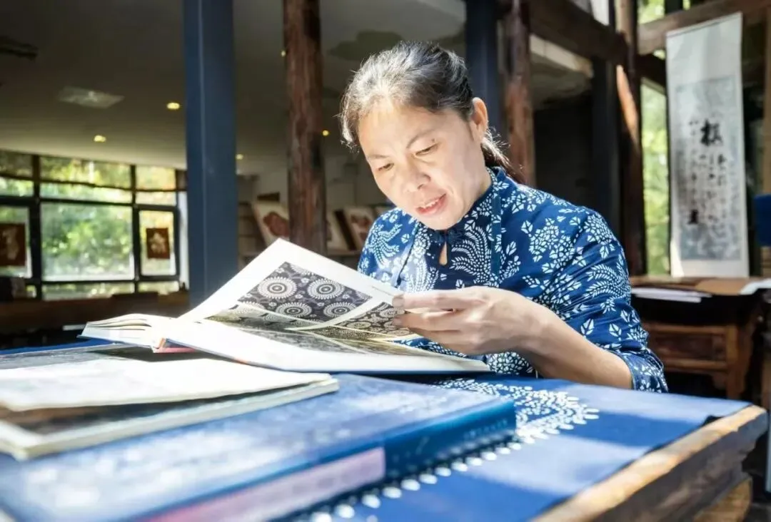 蓝印花布:段氏蓝印花布印染技艺第四代传人段启英,教孩子动手做蓝印花布。