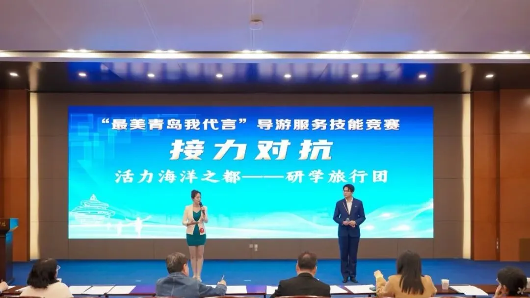 由市文化和旅游局、市委市直机关工委、市总工会、共青团 ,青岛市委、市人力资源和社会保障局、青岛国际邮轮港区服务管理局共同主办,各区(市)文化和旅游局、青岛市旅行社协会协办、青岛酒店管理职业技术学院承办的 2025“最美青岛我代言” 导游服务技能竞赛于2月5号顺利结束。本次导游大赛赛程激烈,设置接力对抗、才艺比拼、模拟带团三大硬核环节,全面考验导游的专业素养、临场应变、知识储备与综合才艺。