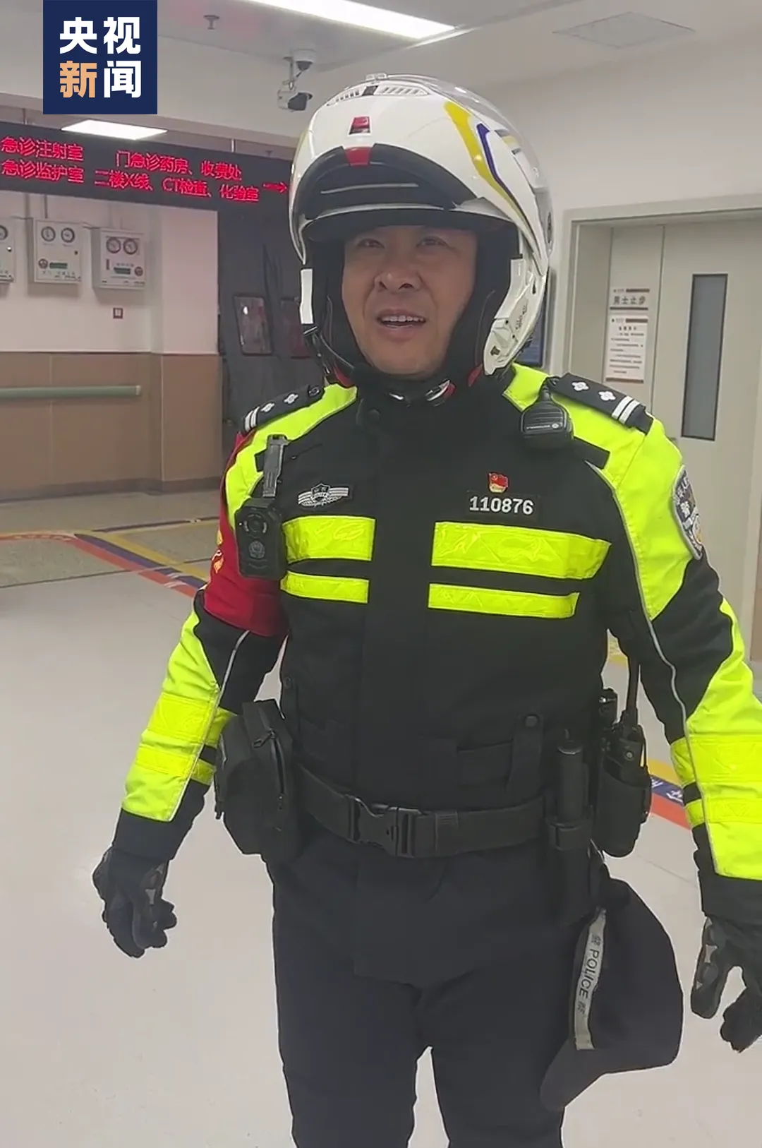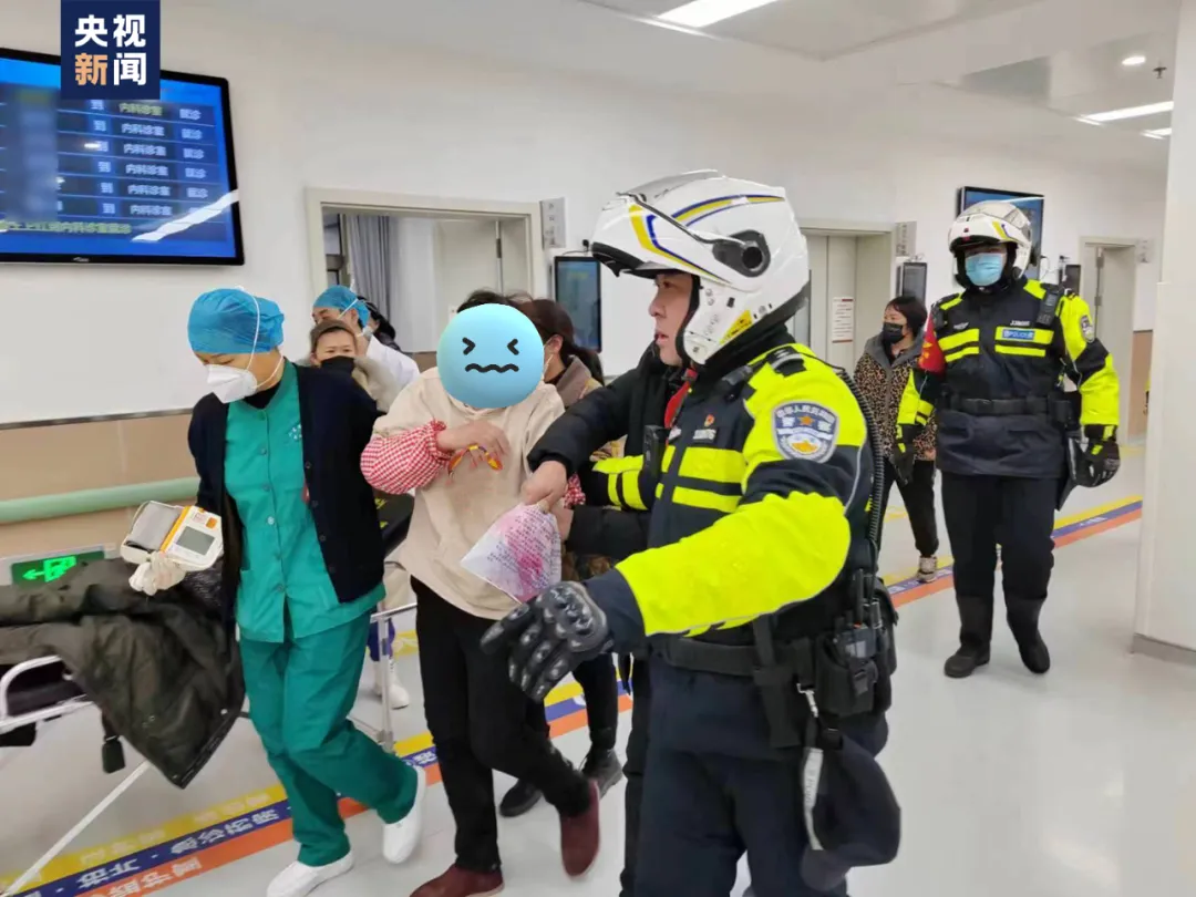 女子在交警铁骑的护送下到达医院