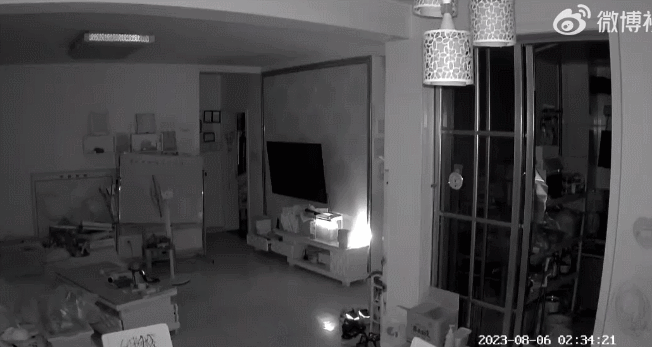 今天凌晨,微博上,一名山东济南网友发布了家中客厅监控视频: