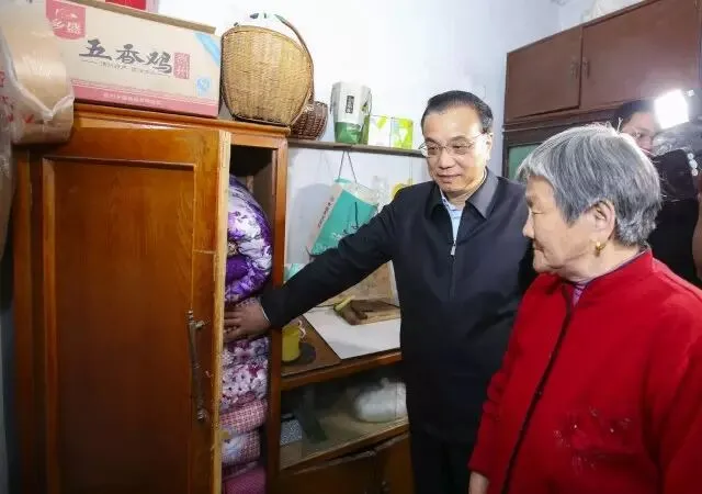 李克强21日走进济南经十一路棚户区张世荣家。老人在这户低矮平房里住了42年,冬天靠碳炉取暖。因为有过四五次煤气中毒经历,晚上再也不敢生火,冬天最冷时需加盖三床棉被。总理听罢说,我进里屋看看行吗?他拉开大衣柜门,里面被褥塞得满满当当。