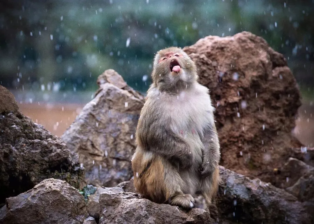 他们就跑到屋外去,张着嘴,让雪花落进去,但那雪还未到嘴里,就总是化了。他们不怕冷,尤其是孩子,互相抓着雪,丢在脖子里,大呼大叫。